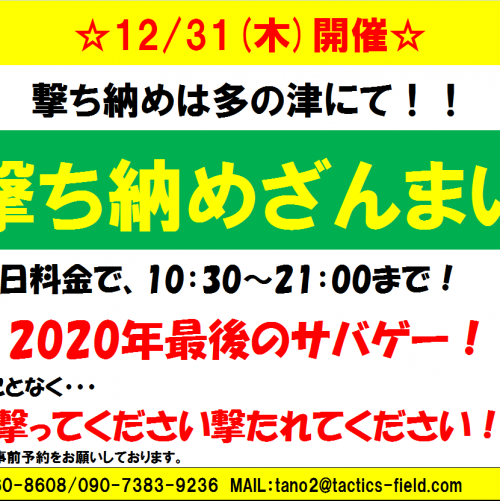 っということで、もう今年最後の日曜ということで明日の予約が昼間は埋まっちゃいました!!!大変ありがたいことに、このコロナ下でもお客さんに集まっていた頂いておりますm(__)m誠にありがとうございます。さて本題ですが、明日は多の津ざんまいということで、10:30からぶっ続けで22:00まで遊んでいきます!!また景品もいくつかあり、さらには今年はクリスマスが平日でしたので、ちょっとしたものをお配りするご予定です♪残念ながら昼のご参加予約に関しましては満員につきご予約できませんが、夕方からのご参加につ...