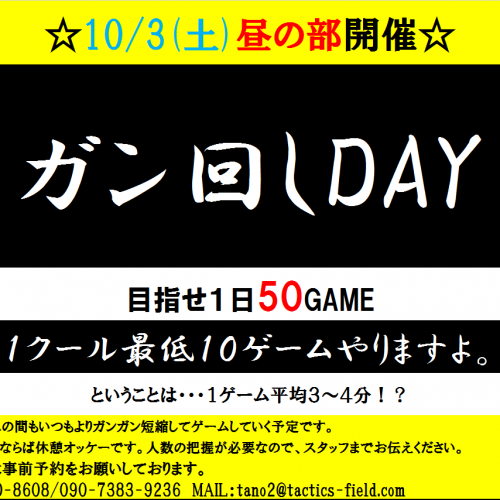お疲れ様でした!明日のエントリー状況ですが、昼の部・・・2名様エントリー+1グループ様貸切夜の部・・・フリー参加戦エントリー無し+1グループ様貸切となっております。昼の部フリー戦開催できるのか・・・・・・?開催できたらガバメント系 VS グロック系というゲームをしたいと思います!人気銃の最大派閥といえばこの2つかと思われます!もちろんM9系とかもありますけどね!パーツが特に多く出てるのはこの辺のはず!今回はこの2種ならどっちが好き~?でチーム分けしたいなと思います!もちろん、相手チームから銃の良...