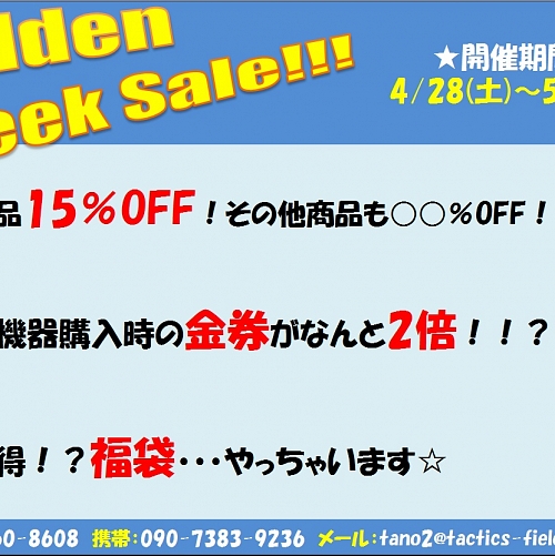 さて、ゴールデンウィークはイベントもセールも盛りだくさん!!今回はセールの方をご紹介します♪ 2018/04/24☆セール情報☆4/28~5/6GWセールやります☆でもありますが、ちょろっと追加です!第1弾!NBセール!対象商品15%OFF!その他一部商品もほにゃらら%引き!!価格シール等にNB(ノーブランド)とある商品全品15%引き!!このように、NBのある商品に関して15%お値引きを致します♪あんな商品や・・・こんな商品が!?お得に手に入っちゃいますよ☆その他一部商品は・・・まだあるよ!!第...