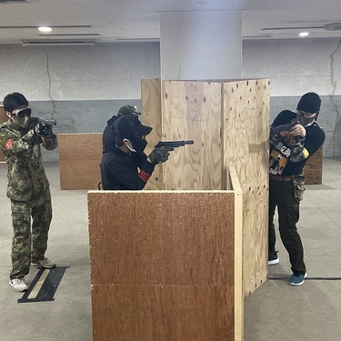 昼の部終了!!お疲れ様でした!!ちょっと今日は湿度もあって暑すぎ!!!今日のハンドガン戦は5Fで行いました!ハンドガンなら突っ込む方が多かったからなのか、縛り無しの時より時間かかりませんでした(笑)ちょっと暑すぎなので本当に熱中症とか気をつけないといけないですねこれ・・・2丁拳銃!どっちが勝つかな・・・?どきどきぶれちゃいましたがFLAG GETです!邪魔って言われながら撮ったシーン。真ん中のドラム缶の上より。こっちクリアリングして・・・ハローシッショー!それではお疲れ様でした!